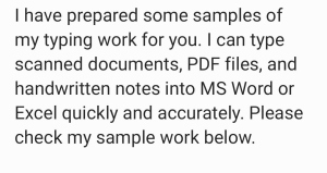 PDF to Word Conversion Sample” “Fast Typing Accuracy Example” “Excel Data Entry Project