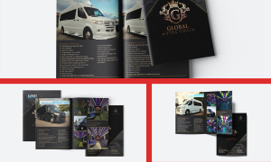 Product Catalogue Design for a Limousines, Shuttles and Party Buses from Pennsylvania, selling to celebraties and studios / production houses.