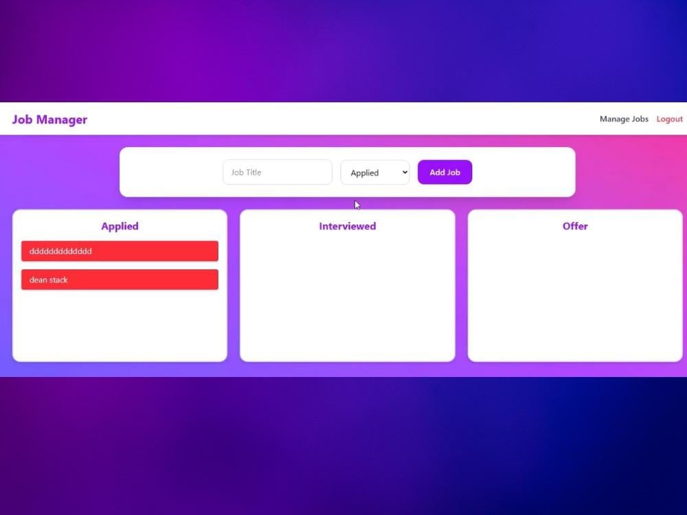 Implemented drag-and-drop functionality for managing jobs in columns: Applied, Interviewed, Offer.