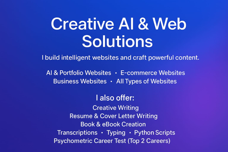 I build AI-powered creative portfolios & high-converting e-commerce sites (Next.js, React, Stripe). Fast, responsive, SEO-optimized.