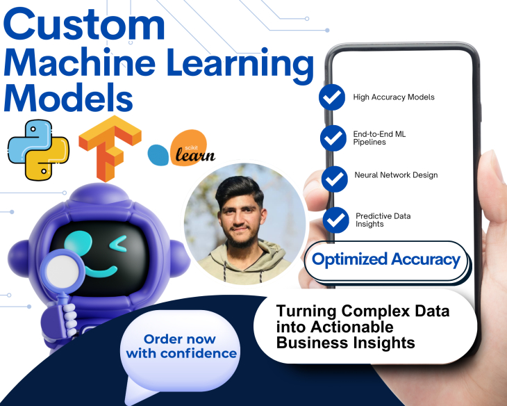 I provide end-to-end ML solutions including Data Cleaning, Feature Engineering, Model Training, and Optimization. Whether it's Predictive Analytics, Classification, or Clustering, I deliver high-accuracy results with clean, documented code.