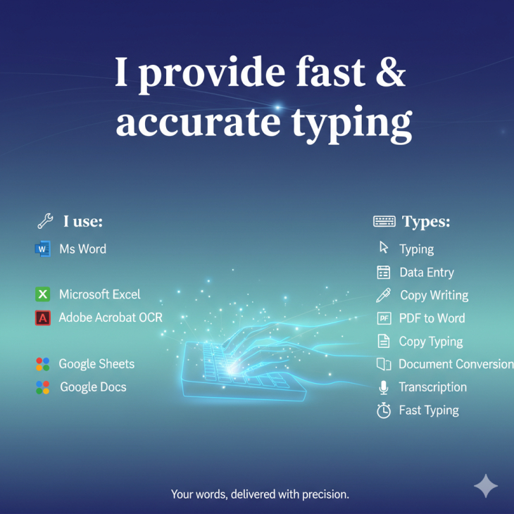 I will provide fast and accurate typing