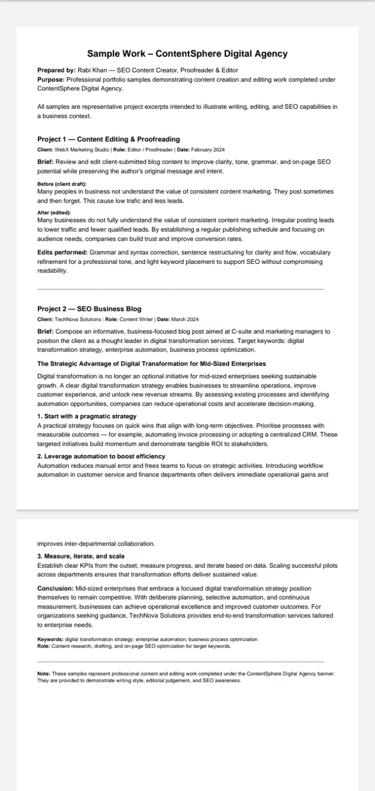 I will provide high-quality SEO content writing, proofreading, and editing services.