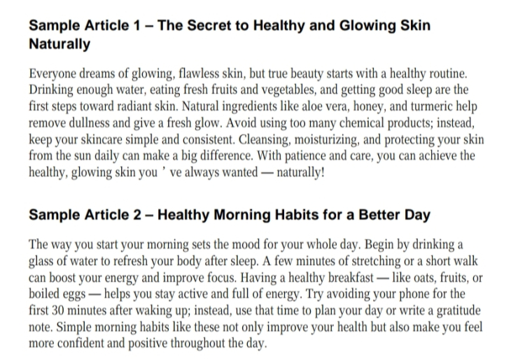 specialize in topics like health, beauty, education, and lifestyle — all written with creativity, accuracy, and originality. You’ll receive grammatically correct, plagiarism-free, and reader-friendly content on time.