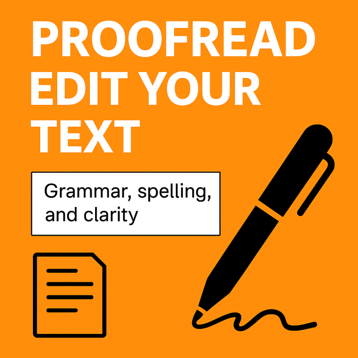 I will carefully proofread and edit your text to ensure it is free from grammar, spelling, and punctuation errors while improving clarity, flow, and readability. Whether it’s academic writing, blog posts, articles, or professional documents, I will refine your content to make it polished and engaging. My goal is to deliver error-free, well-structured writing that leaves a strong impression on your readers.