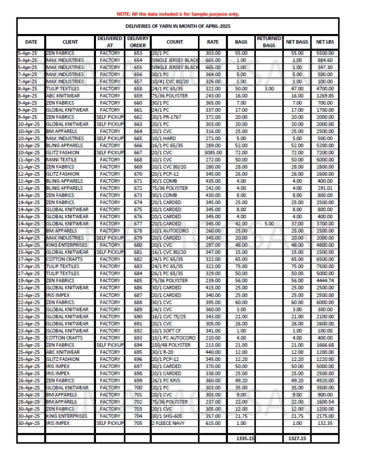 Data Entry sample using Microsoft Excel