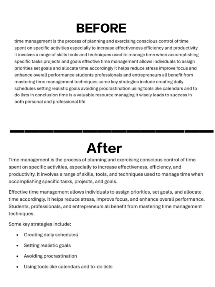 Microsoft Word and Google Docs serve as the primary platforms for document creation and formatting. For bilingual typing (English and Urdu), language-specific keyboards and input tools such as InPage or Google Input Tools are used. Additionally, grammar and spell-check tools such as Grammarly are integrated to enhance the final output. These technologies collectively support a seamless workflow, ensuring timely delivery and client satisfaction.
