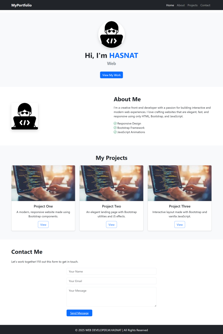 Hello! I’m a passionate Front-End Developer, and I specialize in creating **responsive**, **fast**, and **user-friendly websites**. Whether you need a **personal portfolio**, a **business website**, or a **landing page**, I’m here to bring your vision to life.