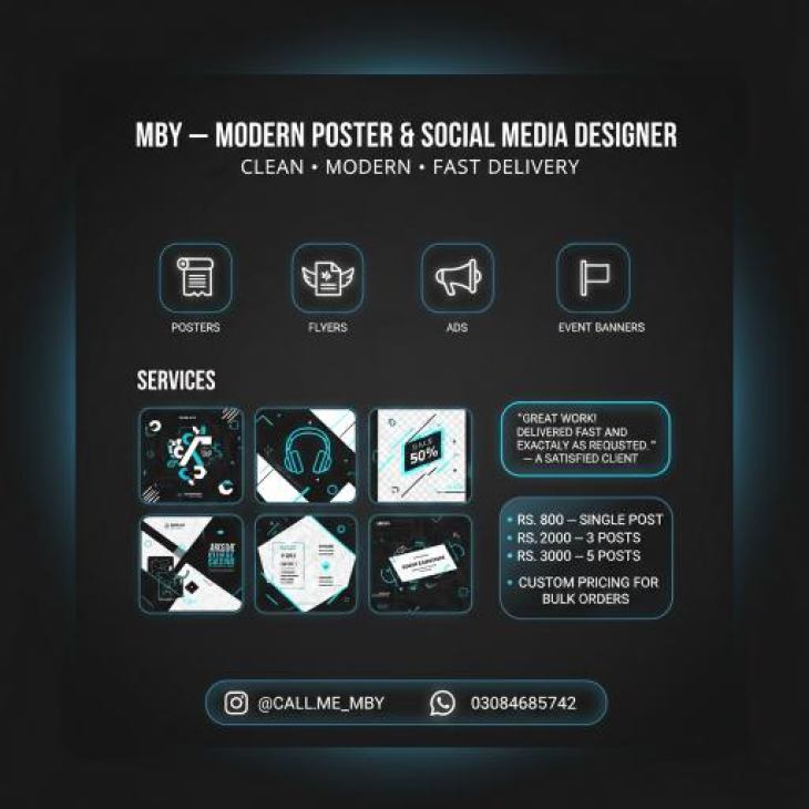 Hi,I am a modern graphics designer who creates stylish , clean and professional posters,flyers,thubnails and social media posts.