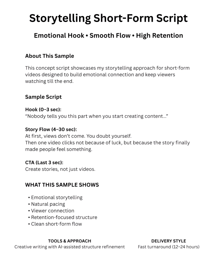I help creators, brands, and marketers turn ideas into high-retention short-form scripts.